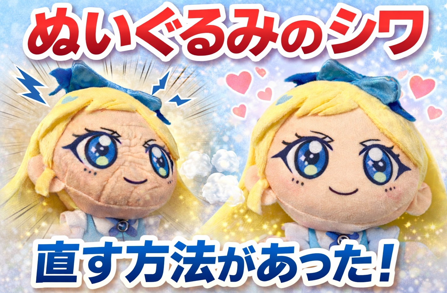 調べていたら、ぬいぐるみのしわを直す方法、ちゃんとありました!